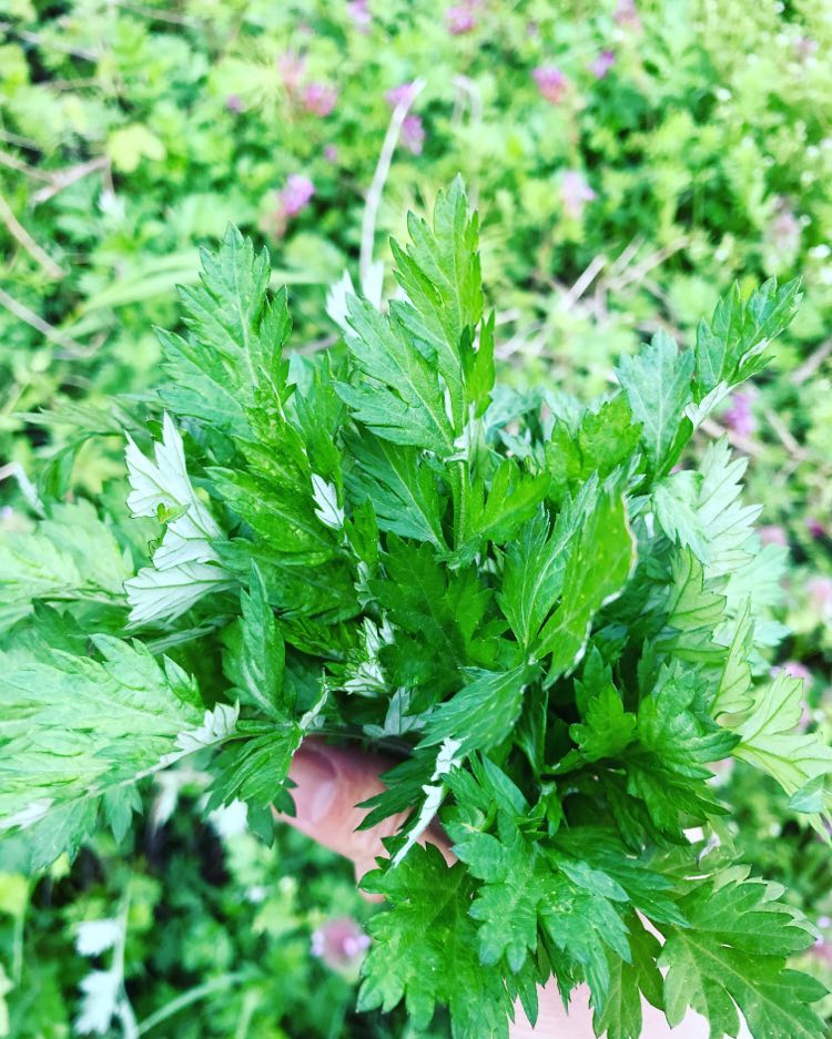 春の野草を見つける、野草天ぷら、(延長保育者のおやつ:桜餅)