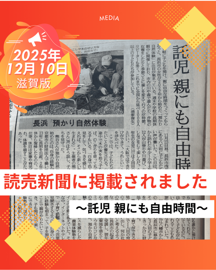 【プレスリリース】“子育て罰”のない社会を、地域からつくる──滋賀・長浜発の「預かり自然体験dive」、累計参加者1000人を突破。